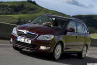 Линейка Skoda Fabia, состоящая из хетчбека и универсала, претерпела небольшой фейслифтинг в 2010 году. Автомобиль заметно увеличился по габаритам, которые теперь составили 4000х1642х1498 мм (у хэтчбека). Дизайнеры придали внешнему виду Fabia больше динамики: горизонтальная линия бампера с новой решеткой радиатора, темные «лакированные» передние и боковые стойки, а также новая форма основных и противотуманных фар визуально расширили переднюю часть автомобиля. Раскосые фары со «зрачками»-линзами, рельефный капот с массивной хромированной планкой. Острые углы в линии боковых стекол придают автомобилю более уверенный облик. Кроме того, Fabia получила новые легкосплавные диски и три новых окраса (светло-голубой «Аква блю», глубокий синий «Пасифик блю» и зеленый металлик «Рейсинг грин»). Свежесть во внешности определенно появилась, но граница между старым и новым дизайном получилась очень тонкая. Главное результат достигнут: Fabia помолодела.