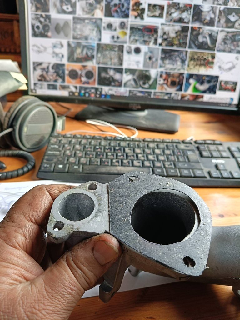 Труба от воздушного дозатора очистилась не без усилий, но хорошо. Прокладку между этой трубой и впускным коллектором вырезал из паронита. Готовую купить не получилось - в наличии в РФ нет, на заказ от 40 дней с вероятностью отказа 90%.
