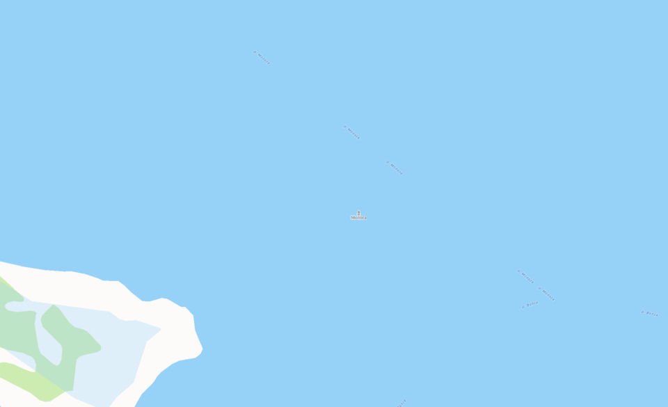 Так я нашел место, где должен был быть город Молога. Это восточнее торфянового плавучего острова Святовский мох (опасный кстати для людей, пишут что выходить на него нельзя) Далее я стал внимательно изучать этот район, на картах ничего нет, и только при сильном приближении классической Яндекс карте нашел вот такой островок