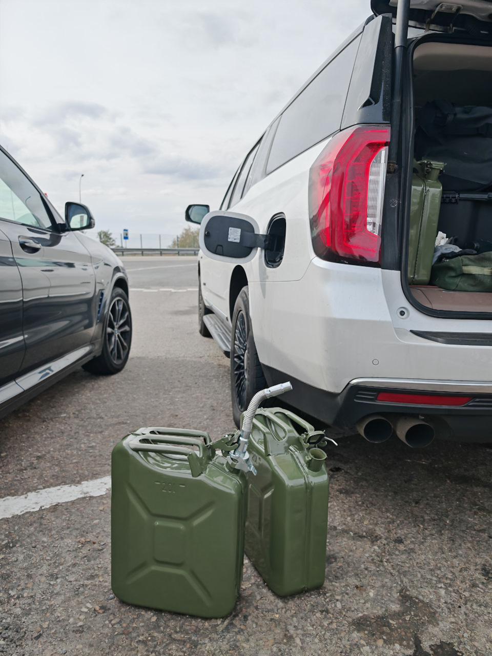 Канистры видим?:))) да, Канистры очень плотно прописались в моем багажнике, потому что аппетит у Юкона хороший, а очереди на заправках огромные)) Но в этом году я прикупил формат Советских канистр.