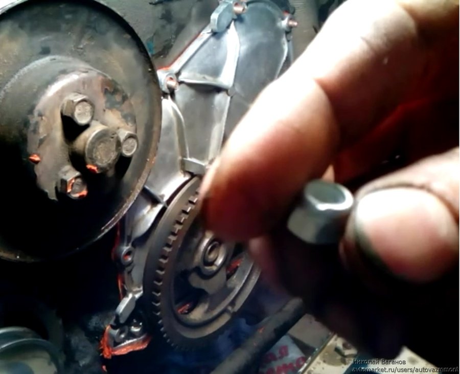 При сборке, по невнимательности, поставил малую шестерню коленвала "юбкой" наружу вместо вовнутрь, из-за чего при затяжке гайки-храповика заблокировался коленвал - пришлось заново снимать крышку и переставлять.