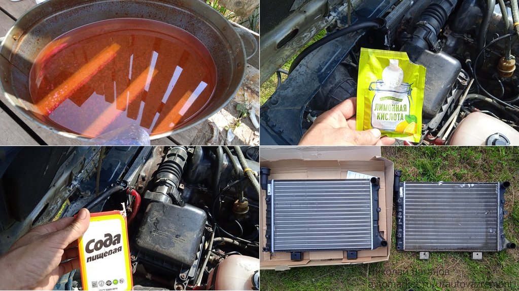 Залил воды и всыпал пачку лимонной кислоты, дал погонять с полчаса, потом постояла с часик, еще раз поработала, слил, залил по новой уже с содой для нейтрализации и хорошенько промыл проточной водой, в общем-то грязи немного вышло, все же антифриз довольно часто меняю из-за различных поломок).