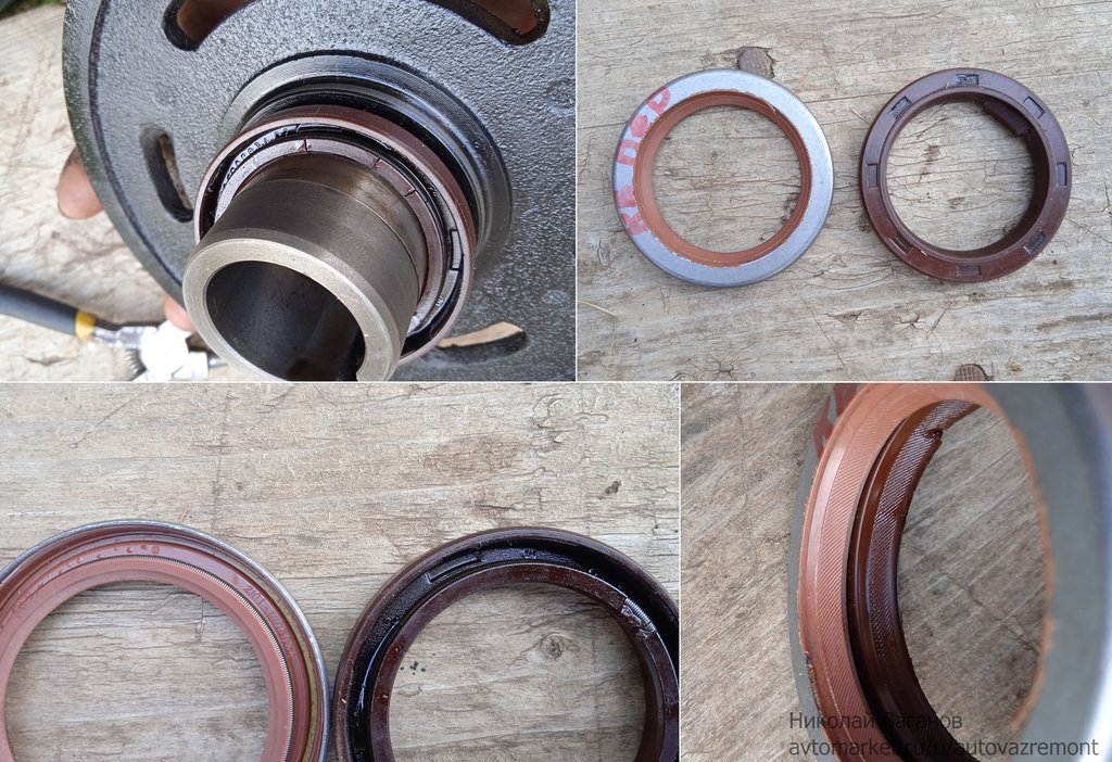 Он чуть пошире, полностью прорезинен и кромка двойная, при установке не совпадет с натертостью на шкиву от старого сальника, да, и сделан из FPM-резины вместо обычной ACM. Из первой делают сальники клапанов, к слову.