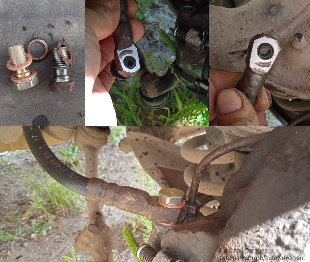 1. Заметил, что начал "потеть" суппорт с внутренней стороны, под пыльником цилиндра было сухо, значит шланчик — оказалось ослаб болт на цилиндре.