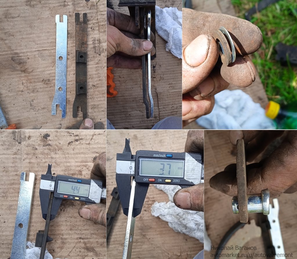 Ремкомплект стояночного механизма оказался каким-то не таким (хотя в магазине утверждали, что ВАЗ оригинал), планки были уже, палец не входил в отверстие, шайба тоже какая-то хлипенькая, поэтому решил оставить старый, благо там особого износа не наблюдалось.