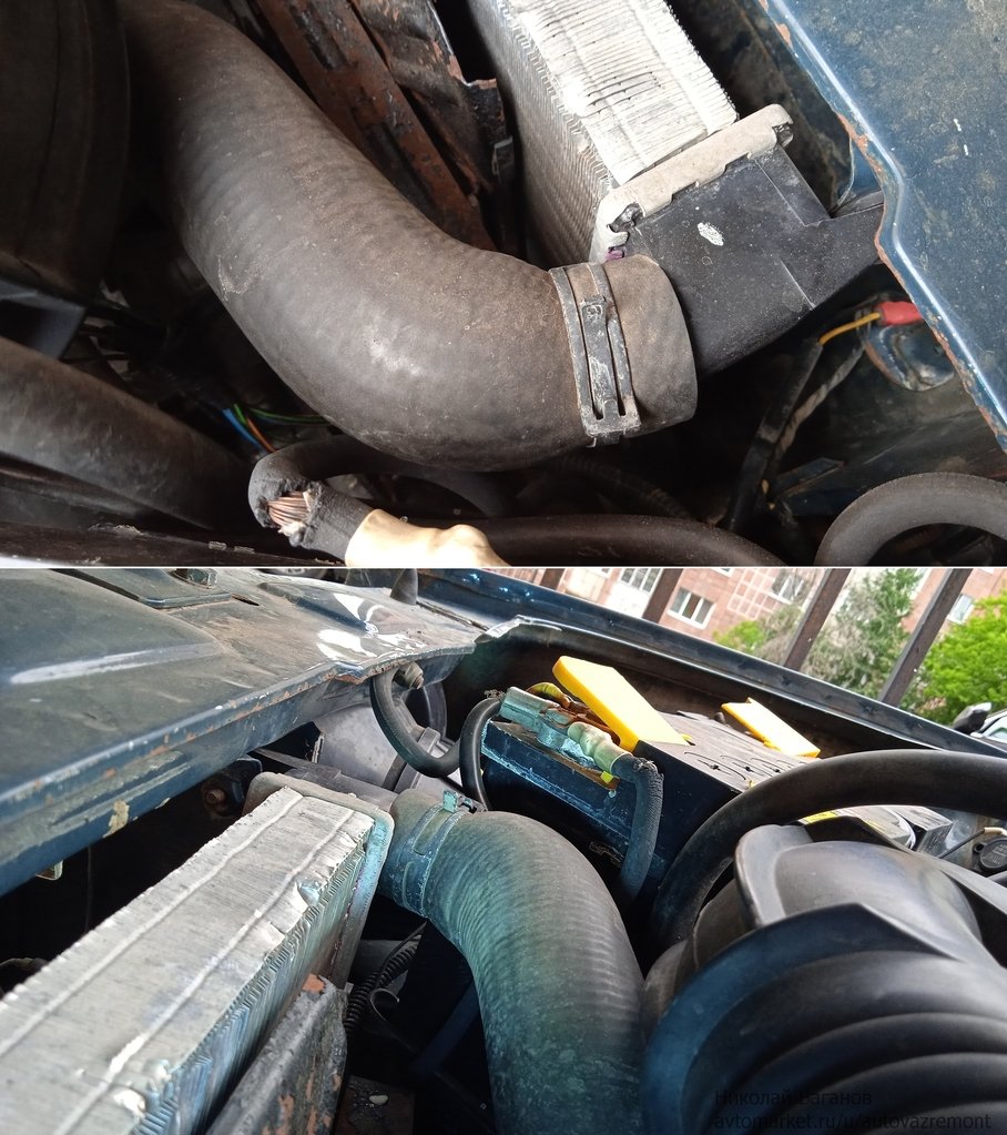 Ну, и заметил, что патрубки к радиатору сильно раздуты сами по себе, хотя антифриз при нагреве нормально сбрасывается в бачок.