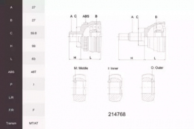 ACEMARK 214768 -  Шарнирный комплект, приводной вал